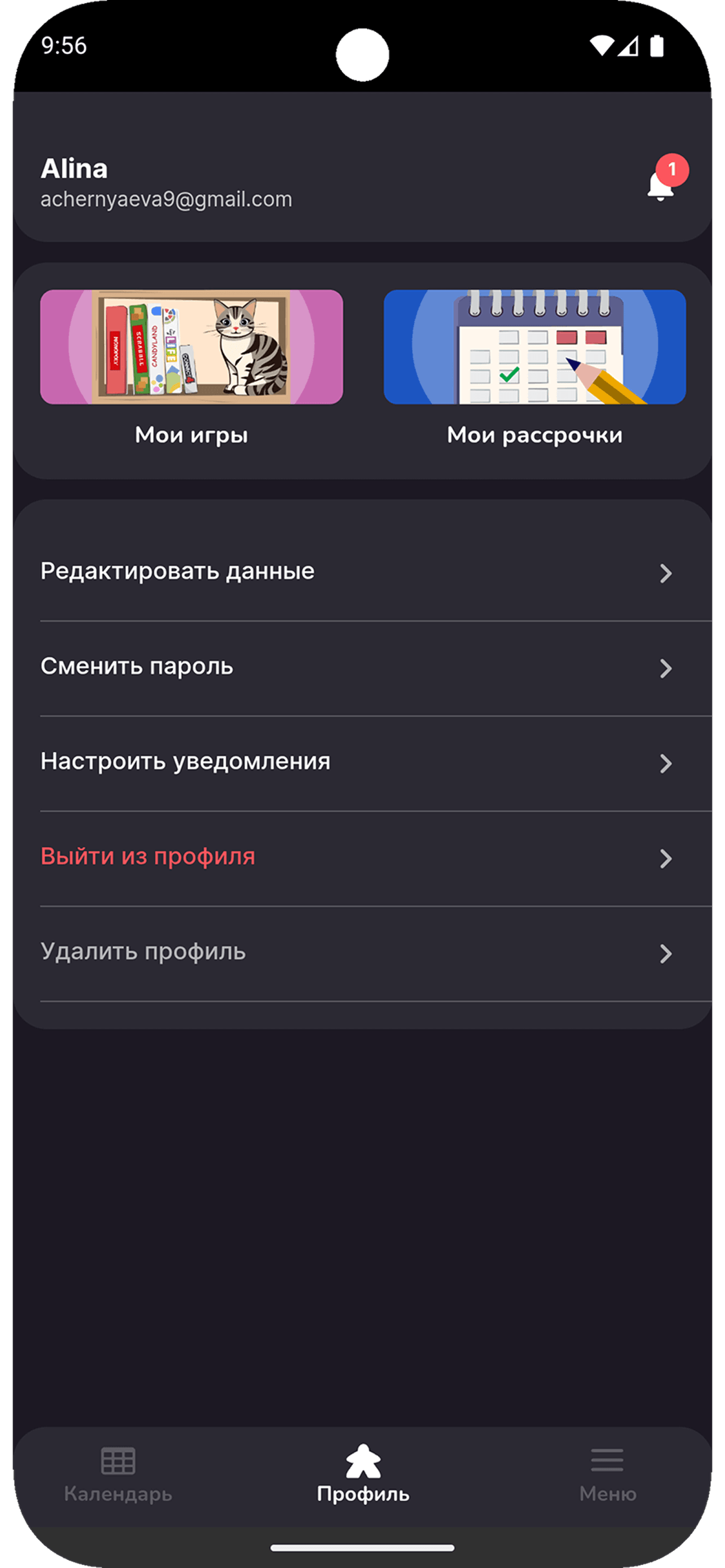 Чтобы удалить аккаунт и всю информацию о пользователе, нужно перейти в раздел Профиль и выбрать пункт меню Удалить профиль